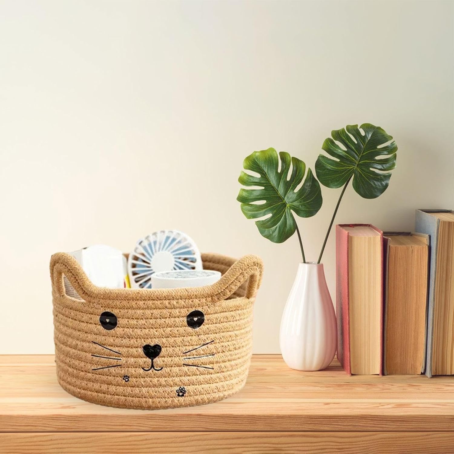 Craquez pour le caractère ludique de ces Paniers de Rangement, au design en forme de chat, parfaits pour la chambre d’enfant ou un coin bureau fun.
